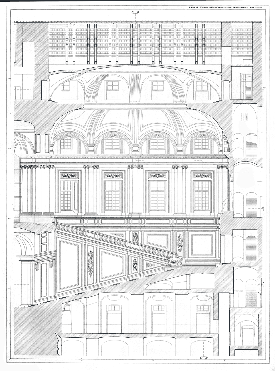 Vanvitelli, in general, fully confirmed himself as an exponent of neoclassicism, trying to use the classical orders according to the ideal canons. The perfect correspondence in proportions to Vignola and Palladio are proof of this. The architect grants the innovations or variations from the model in the Tuscan style, in search of an otherwise unobtainable impetus, and in the individual parts of the orders, in particular the bases and capitals: the former more rational and effective in giving the idea of valid support to the column, the latter, particularly in the composite, simpler and more elegant, in search of the sobriety that distinguishes his work in Caserta. The architect emerges from the research as a protagonist of his time who ferries the Italian architecture of the eighteenth century from the Baroque to the Neoclassical.