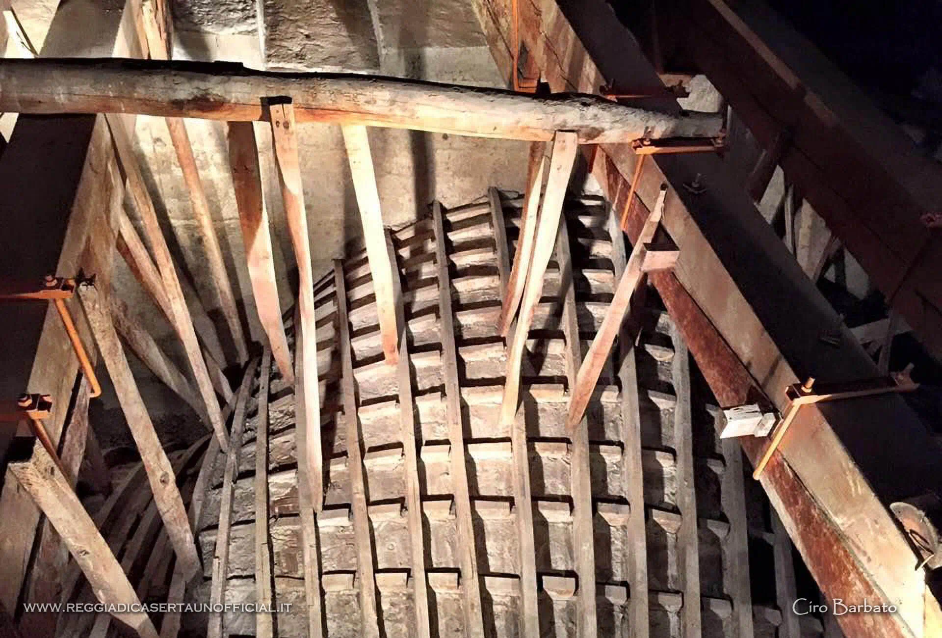 Initially it should have had the same width as the other ramps and also two lateral balustrades, but Vanvitelli decided to widen it and remove the balustrades to increase its monumentality. In fact, the steps are formed by a single 8m wide slab, so that there are no joints to distract our attention.